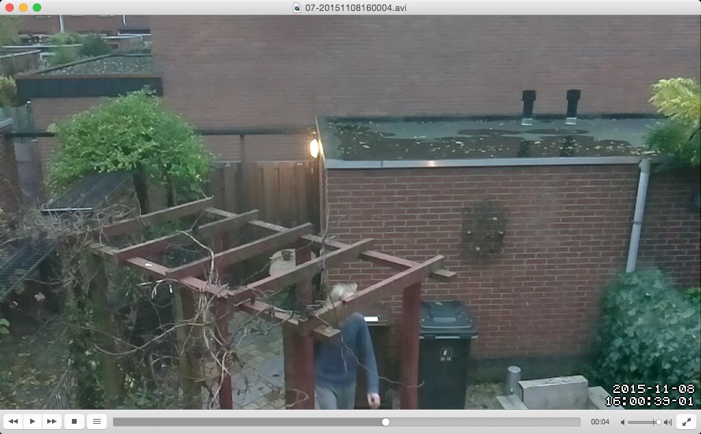 Image from a motion video. If someone (in this case my son) is entering our backyard it is perfectly recorded by Motion. |